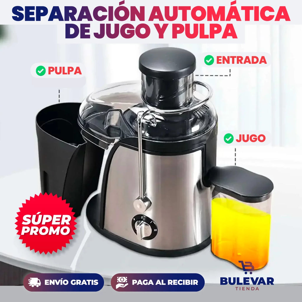 Perfecto para quienes buscan una alimentación saludable, este jugador de jugos separa automáticamente la pulpa del líquido, e incluye jarra recolectora + contenedor de pulpa, cuchillas de acero inoxidable y cepillo de limpieza para mantener todo impecable en pocos minutos.